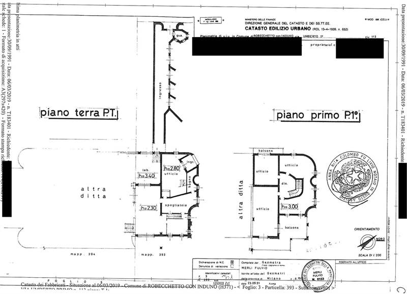 la piena ed intera proprietà di un edificio nel seguente stato di fatto: corpo di fabbrica composto da tre porzioni a differente destinazione d’uso, in più punti comunicanti tra loro e non divisibili. L’edificio si presenta in avanzato stato di abbandono e in più punti non utilizzabile se non con un intervento di ristrutturazione rilevante. Al piano terra si compone di ingresso, n. 3 locali laboratorio seminterrati, deposito e piano terra della zona uffici, oltre a fabbricato di ingresso. Al piano primo si sviluppa la abitazione composta da soggiorno, cucina, pranzo, cottura, tre camere, quattro bagni, oltre a locali accessori e terrazzi e la zona uffici con balconi. L’edificio insiste su ampia area pertinenziale.